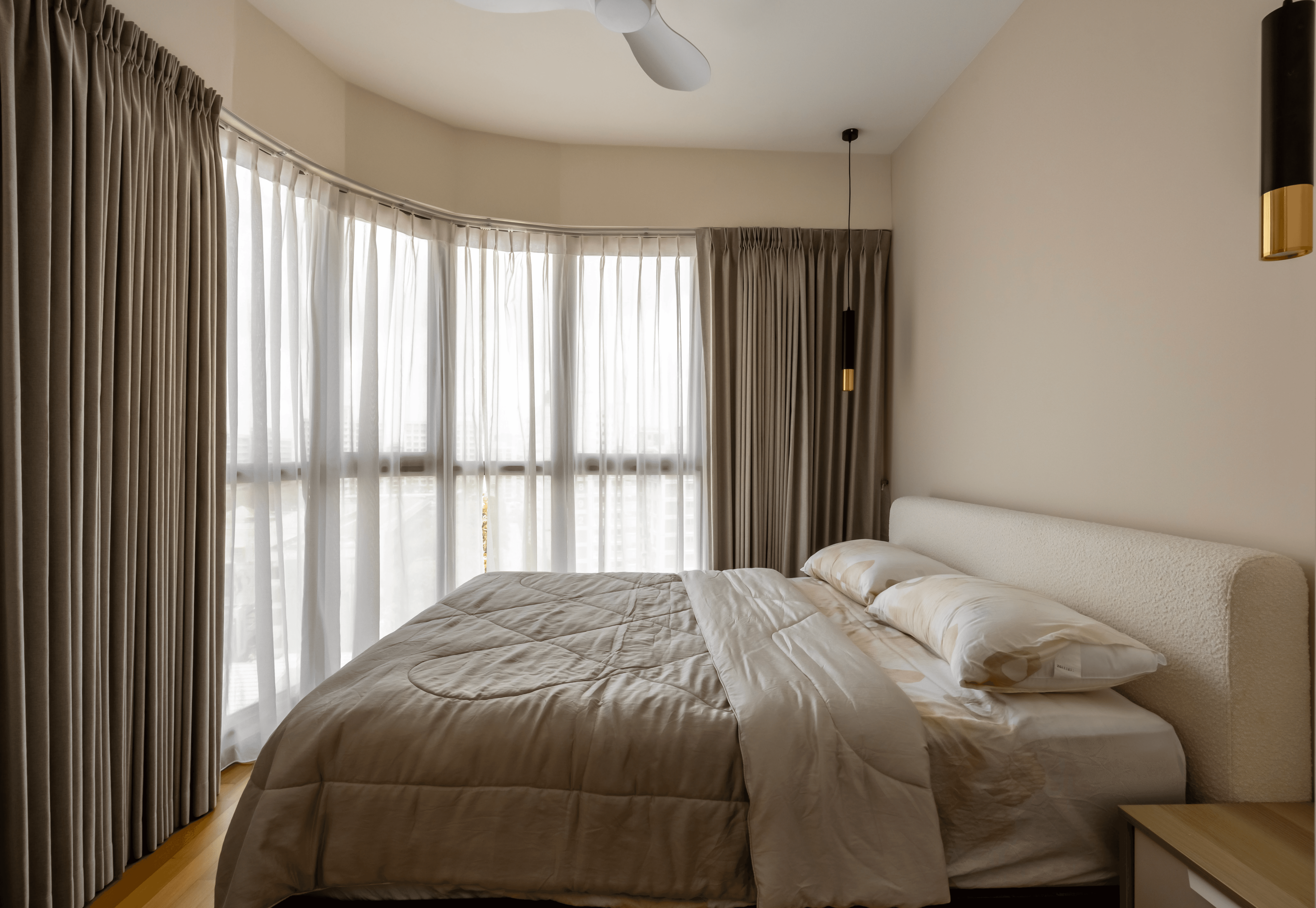 A calming mix of ivory, taupe, and warm wood tones forms the foundation, allowing accent textures to shine subtly.